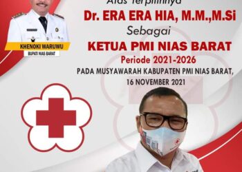 Nias Barat, suarainvestigasi.com - Selamat atas Terpilihnya Dr. Era-Era Hia, MM,M.Si, (Wakil Bupati Nias Barat) sebagai Ketua PMI Kabupaten Nias ...