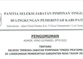 Read moreNias, suarainvestigasi.com - Dalam rangka Pengisian Pimpinan Tinggi Pratama Pemkab Nias sesuai dengan Undang-Undang Nomor 5 Tahun 2014 tentang Aparatur ...