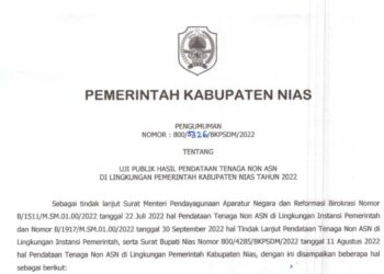 Pengumuman Uji Publik Hasil Pendataan Non ASN Di Lingkup Pemkab Nias Tahun 2022