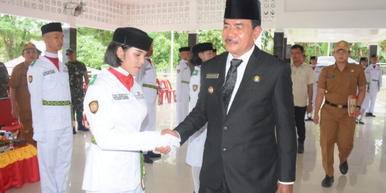 Nias Barat, suarainvestigasi.com –Setelah mengikuti latihan selama dua minggu, sejak 1 Agustus 2023, Pasukan Pengibar Bendera Pusaka (Paskibraka) Kabupaten Nias Barat resmi dikukuhkan oleh Bupati Nias Barat Khenoki Waruwu, Senin (14/08/2023) sore di Aula Soguna Ba Zato, Onolimbu-Lahomi, (14/08/2023).