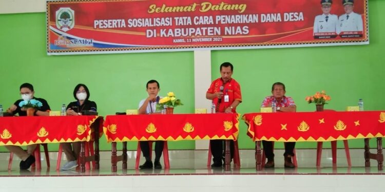 Nias, suarainvestigasi.com – Bank Sumut Gunungsitoli dan Cabang Pembantu Gido bersama Pemerintah Kabupaten Nias melalui Dinas PMD Kabupaten Nias Melaksanakan Sosialisasi Tata Cara Penarikan Dana Desa di Kabupaten Nias yang dilaksanakan di Gedung Howu-howu Desa Lasara Kecamatan Gido Kabupaten Nias, pada hari kamis (11/11/2021).