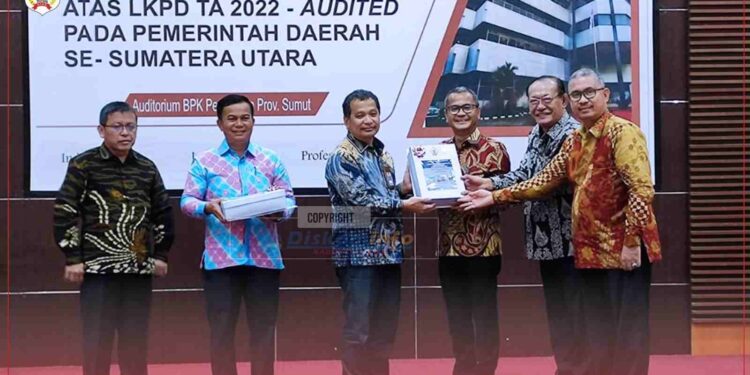 Medan, suarainvestigasi.com – Kepala Perwakilan BPK RI Provinsi Sumatera Utara Eydu Oktain Panjaitan, S.E, M.M, Ak, CA, CSFA sampaikan Laporan Hasil Pemeriksaan (LHP) BPK atas Laporan Keuangan Pemerintah Daerah (LKPD) Kabupaten Nias Tahun Anggaran 2022 di Gedung BPK Perwakilan Provinsi Sumatera Utara, Jalan Imam Bonjol No. 22 Medan, Senin 08/05/2023)