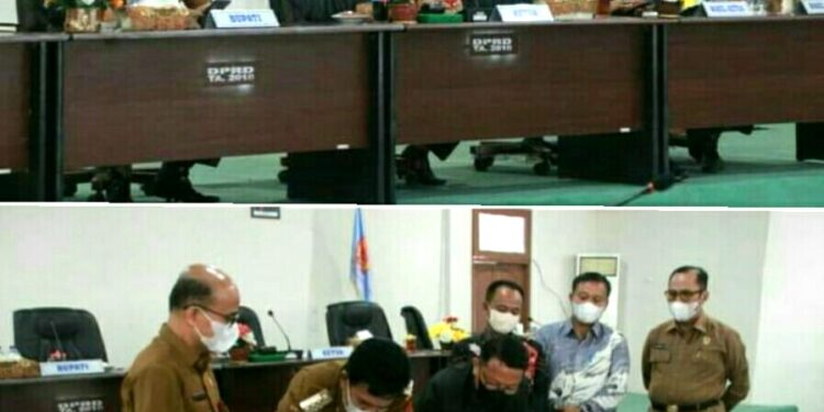 Bupati, mengatakan bahwa, Penandatanganan Nota Kesepakatan yang dilaksanakan hari ini, merupakan Amanat Peraturan Mendagri No. 77 Tahun 2020 tentang Pedoman teknis Pengelolaan Keuangan Daerah. Nota dimaksud dituangkan dalam Nota Kesepakatan Perubahan KUA dan Nota Kesepakatan PPAS yang ditandatangani bersama anatara Kepala Daerah dengan Pimpinan DPRD.