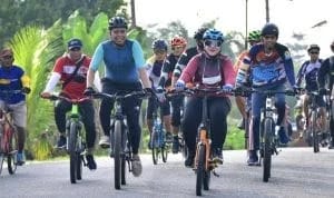 Suarainvestigasi.com, MUSI RAWAS – Bupati Musi Rawas (Mura), Hj Ratna Machmud dan Wakil Bupati Mura, Hj Suwarti mengikuti Gowes Wisata Danau Aur, sekitar pukul 06.30 WIB, Minggu (23/1/2022).