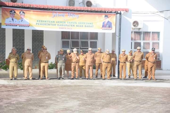 Pelaksanaan upacara penaikan Bendera di lingkungan Pemerintah Kabupaten Nias Barat dihadiri Staf Ahli Bupati, Asisten Sekda, Kepala OPD, Kepala Bagian, pejabat administrator, pejabat pengawas dan staf lainnya.