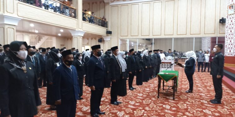 MUSI RAWAS, Suarainvestigasi.com – Bupati Musi Rawas (Mura), Hj Ratna Machmud melantik dan mengambil sumpah janji jabatan kepada 102 Kepala Sekolah di lingkungan Pemerintah Kabupaten (Pemkab) Mura, Jumat (18/3) di Auditorium Kantor Bupati Mura.