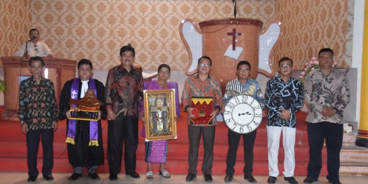 Nias Barat, suarainvestigasi.com – Bupati Nias Barat Khenoki Waruwu mengikuti kebaktian sekaligus menghadiri acara Pesta Pembangunan Gereja BNKP Jemaat Sisarahili I Resort 20 di Desa Sisarahili I Kecamatan Mandrehe, Minggu (05/03/2023).