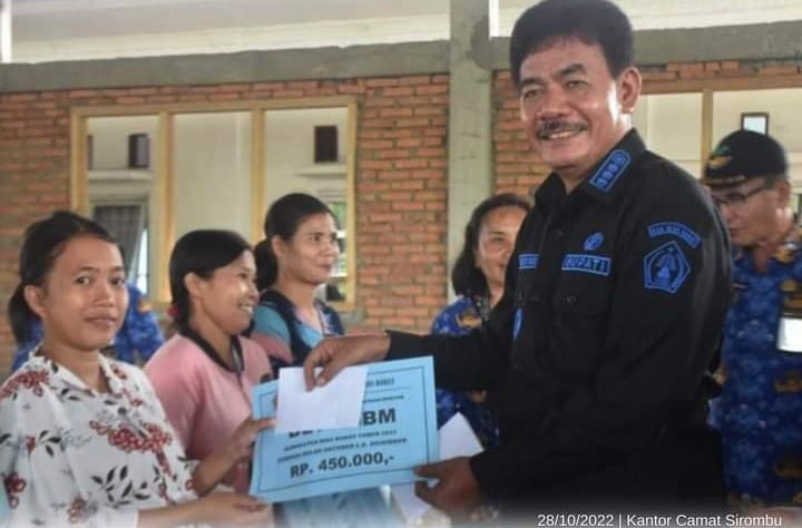 Bupati Nias Barat didampingi Plt. Camat Sirombu Mesrawani Zalukhu, S.AP., menyalurkan BLT kepada 3.559 orang Penerima Manfaat di wilayah Kabupaten Nias Barat.