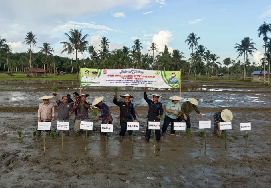 Nias Barat – Suarainvestigasi.com –Bupati Nias Barat Khenoki Waruwu, melakukan penanaman perdana intensifikasi padi sawah di Sawah Ba’a Desa Hilidaura Kecamatan Mandrehe Barat pada Jumat (11/08/2023) sore.