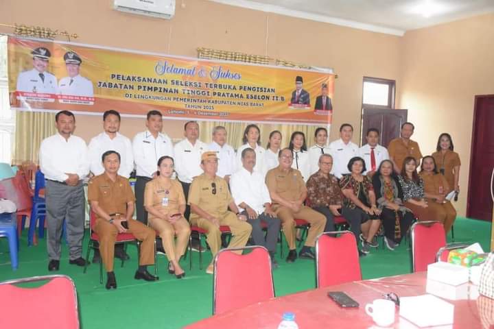 Nias Barat, suarainvestigasi.com – Asisten Administrasi Umum Sekretariat Daerah Kabupaten Nias Barat Sabahati Gulo, S.Sos., M.M., mewakili Bupati Nias Barat membuka pelaksanaan Seleksi Terbuka Pengisian Jabatan Pimpinan Tinggi Pratama (JPTP) Eselon II. b di lingkungan pemerintah Kabupaten Nias Barat yang dilaksanakan di Ruang Afo Bappelitbangda, Selasa (05/12/2023).