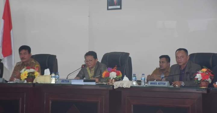 “Salah satu penyelenggaraan urusan pemerintahan yang menjadi kewenangan daerah adalah pemerintah daerah bersama legislatif membentuk dan menetapkan peraturan daerah dalam rapat paripurna DPRD,” ungkap Bupati Khenoki Waruwu.
