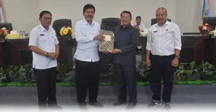 Usai Bupati Nias Barat, Khenoki Waruwu menyampaikan nota pengantar pada kedua ranperda tersebut, dilanjutkan dengan penyerahan nota pengantar kepada Ketua DPRD Nias Barat, Drs. Evolut Zebua.