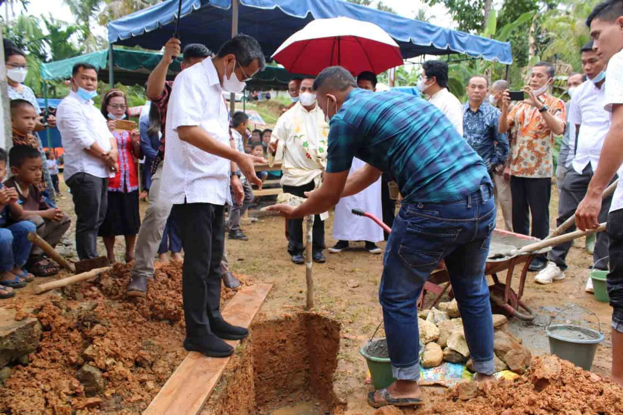 Nias, suarainvestigasi.com –Bupati Nias, Yaatulo Gulo,SE,SH,M.Si, menghadiri Acara Peletakan Batu Pertama dan Pesta Pembangunan Gereja Katolik Stasi St.Flavius di Desa Orahili Idanoi, Kecamatan Hiliserangkai, Kabupaten Nias, Sabtu (30/10/2021).