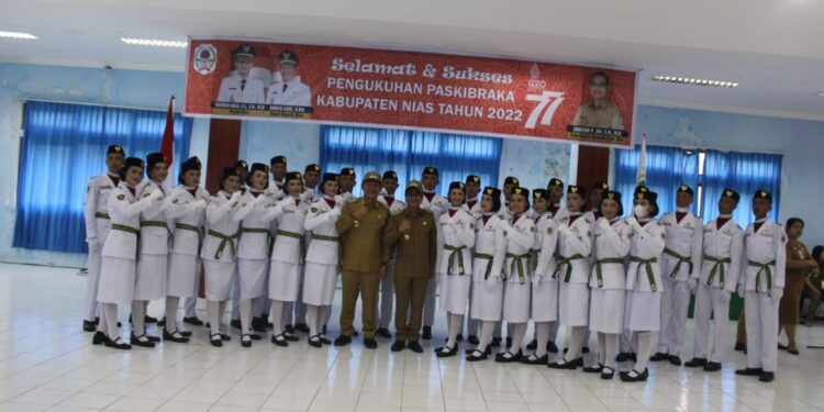 Nias, suarainvestigasi.com – Bupati Nias mengukuhkan Pasukan Pengibar Bendera Pusaka (pakisbraka) Kabupaten Nias Tahun 2022, bertempat di Aula Kantor Bupati Nias, Senin (15/08/2022)