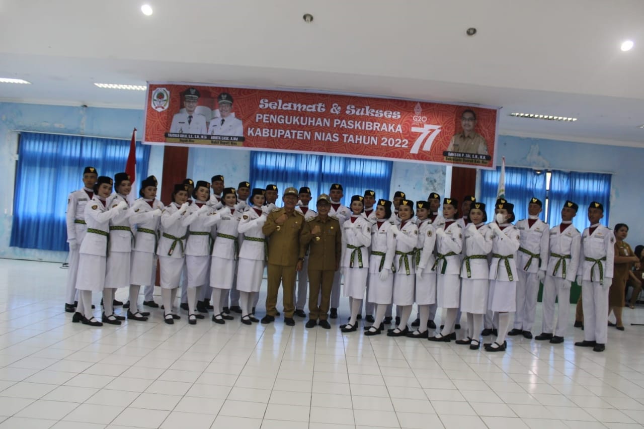 Nias, suarainvestigasi.com – Bupati Nias mengukuhkan Pasukan Pengibar Bendera Pusaka (pakisbraka) Kabupaten Nias Tahun 2022, bertempat di Aula Kantor Bupati Nias, Senin (15/08/2022)