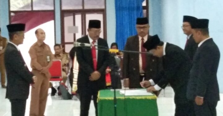 Sebanyak 29 orang Pejabat dilantik dan diambil sumpah/janji oleh Bupati Nias dengan berbagai jenjang Jabatan dilingkungan Pemerintah Kabupaten Nias yang didampingi oleh Rohaniawan Agama Kristen, Katolik dan Islam.