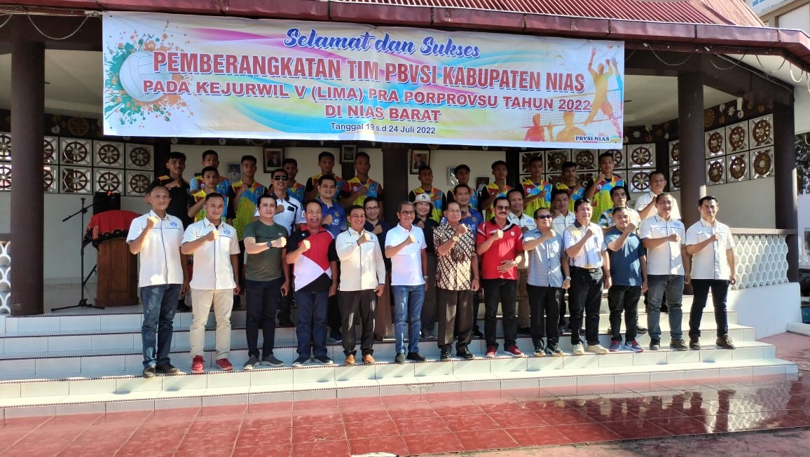 Nias, suarainvestigasi.com – Bupati Nias Resmi Memberangkatkan Kontingen Bola Voli Kabupaten Nias Pada Kejurwil V Pra Porprovsu Tahun 2022 Di Nias Barat. Kegiatan tersebut bertempat di Pendopo Bupati Kabupaten Nias, Minggu (17/07/2022)