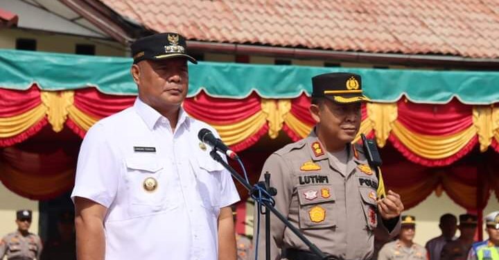 Gunungsitoli, suarainvestigasi.com – Bertindak sebagai Pemimpin Apel Kapolres Nias Bapak AKBP Luthfi, S.I.K dan Bupati Nias Utara Bapak Amizaro Waruwu, S.Pd. Pimpin Apel Gelar Pasukan Operasi Ketupat Tahun 2023 bertempat di Lapangan Apel Mapolres Nias, Senin (17/04/2023).