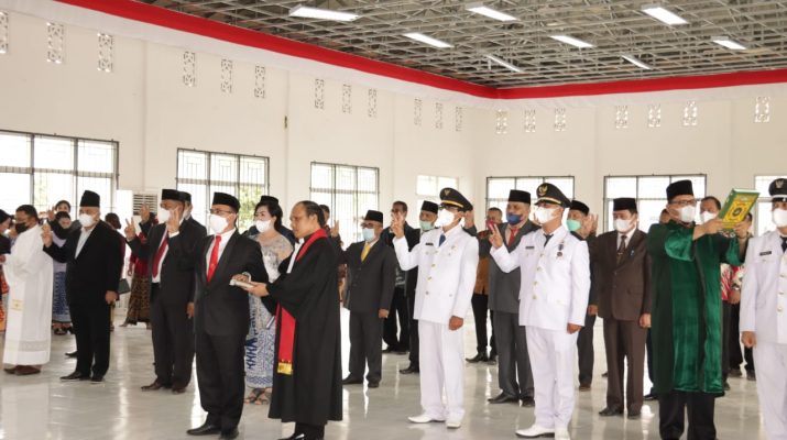 Nias Utara, suarainvestigasi.com – Bertempat di Aula Tafaeri Kabupaten Nias Utara, Bupati Nias Utara Amizaro Waruwu,S.Pd Lantik Pejabat Pimpinan Tinggi Pratama, Administrator dan Pengawas di Lingkungan Pemerintah Kabupaten Nias Utara yang berjumlah 29 orang yang terdiri dari 15 orang Eselon II, 8 orang Eselon III, 2 orang Eselon IV dan 4 orang Staf, pada hari Selasa (04/01/2022)