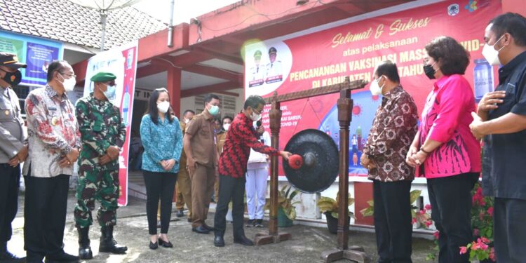 Nias, suarainvestigasi.com – Bupati Nias Ya’atulö Gulö,SE,SH,M.Si, Laksanakan Pancanangan Vaksinasi Covid-19 Massal di Kabupaten Nias. yang di laksanakan di Puskesmas Hiliweto Gido, Kecamatan Gidö pada hari Selasa (14/09/2021).