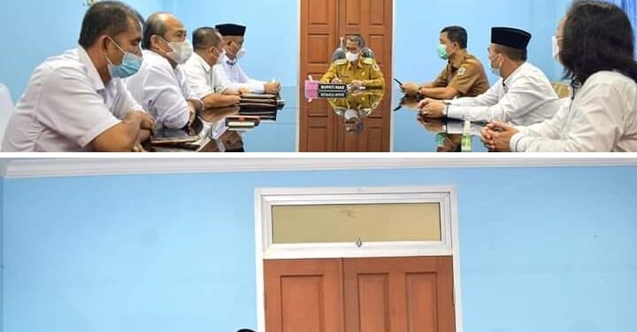 Nias – suarainvestigasi.com –Bupati Nias Ya’atulo Gulo,SE,SH,M.Si, menerima Kunjungan Silaturahmi Muhammad Rosyadi Lubis Kepala Kantor Kementerian Agama Kabupaten Nias, pada hari Senin (15/11/2021).
