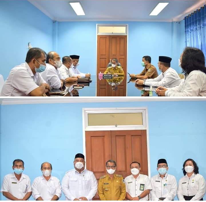 Didampingi Kabag Prokopim, Bupati Nias menyambut baik Kunjungan Kakan Kemenag Nias, seraya mengucapkan selamat Bertugas di Kabupaten Nias.