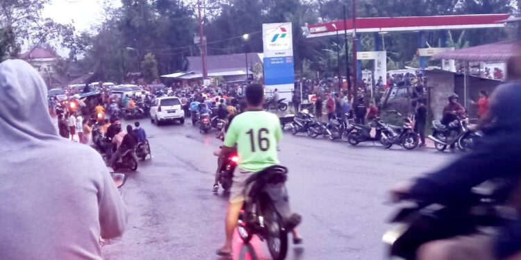 Nias Barat, suarainvestigasi.com – Putusnya akses jalan Provinsi menuju Nias Barat pada ruas Dola-Duria tepatnya di KM 27 Desa Fadoro Hunogoa Kecamatan Hiliserangkai Kabupaten Nias, mengakibatkan BBM langka di sejumlah Stasiun Pengisian Bahan Bakar Umum (SPBU) di wilayah Kabupaten Nias Barat, (14/12/2022)