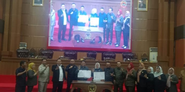 Musi Rawas, Suarainvestigasi.com – Rapat paripurna pamungkas dewan perwakilan rakyat daerah (DPRD) kabupaten musi rawas periode 2019-2024 telah mengesahkan Rancangan Peraturan Daerah (Raperda) Perubahan APBD 2024 menjadi Peraturan Daerah (Perda) Perubahan APBD 2024.Pengesahan Raperda menjadi Perda dituangkan dengan penandatanganan nota kesepakatan antara Eksekutif diwakili Hj Ratna Machmud dengan legislatif, diwakili Ketua DPRD Musi Rawas, Azandri, S.IP disaksikan Wakil Ketua II, Hendra Adi Kusuma, Ketua-Ketua Fraksi, Ketua-Ketua Komisi.