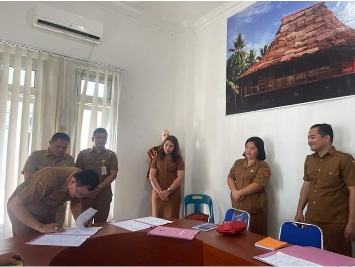 Nias Barat, suarainvestigasi.com – Serah terima antara Pejabat lama kepada Pejabat baru di Laksanakan Dinas Pariwisata dan Kebudayaan Kabupaten Nias Barat sesuai dengan Rotasi, Mutasi dan Promosi Jabatan di Lingkup Pemerintah Kabupaten Nias Barat, pada hari Selasa (04/01/2022 ).