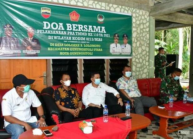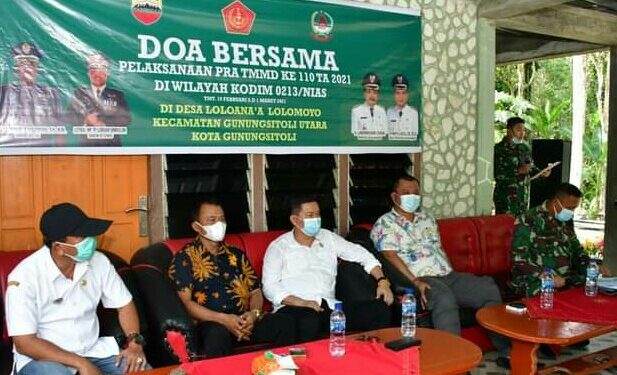 GUNUNGSITOLI, Suarainvestigasi.com –Wakil Walikota Gunungsitoli Sowa’a Laoli.,SE.M.Si, turut hadiri doa bersama dalam rangka Pra “TMMD” yang ke-110 TA. 2021 di Wilayah Kodim 0213-Nias. Acara di laksanakan du Desa Loloana’a Lolomoyo Kec. Gunungsitoli Utara, Kegiatan doa Pra “TMMD” diselenggarakan oleh Kodim 0213-Nias, bertujuan agar seluruh rangkaian yang akan dilaksanakan mendapat Ridho dari Tuhan yang Maha Kuasa.