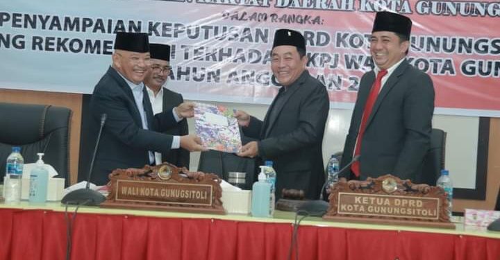 Rekomendasi tersebut tertuang dalam Keputusan DPRD Kota Gunungsitoli Nomor 170/11/KPTS/DPRD/2022 tentang Rekomendasi terhadap Laporan Keterangan Pertanggungjawaban (LKPJ) Wali Kota Gunungsitoli Tahun 2021. Rekomendasi yang disampaikan merupakan catatan-catatan Strategis yang berisikan saran, masukan dan/atau Koreksi terhadap Penyelenggaraan urusan Desentralisasi, Tugas Pembantuan, dan Tugas Umum Pemerintahan pada Masa yang akan datang.