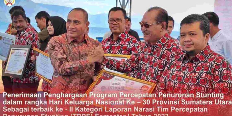 Penyerahan Piagam Penghargaan Tingkat Provinsi Sumatera Utara terbagi dalam 3 (tiga) kategori yakni, Kategori Laporan Narasi Tim Percepatan Penurunan Stunting (TPPS) Semester I Tahun 2023, Kategori Kabupaten/Kota dengan Praktik Baik dan Penghargaan Pelaksana Program Technical Assistant Satuan Tugas Percepatan Penurunan Stunting Kabupaten/Kota.
