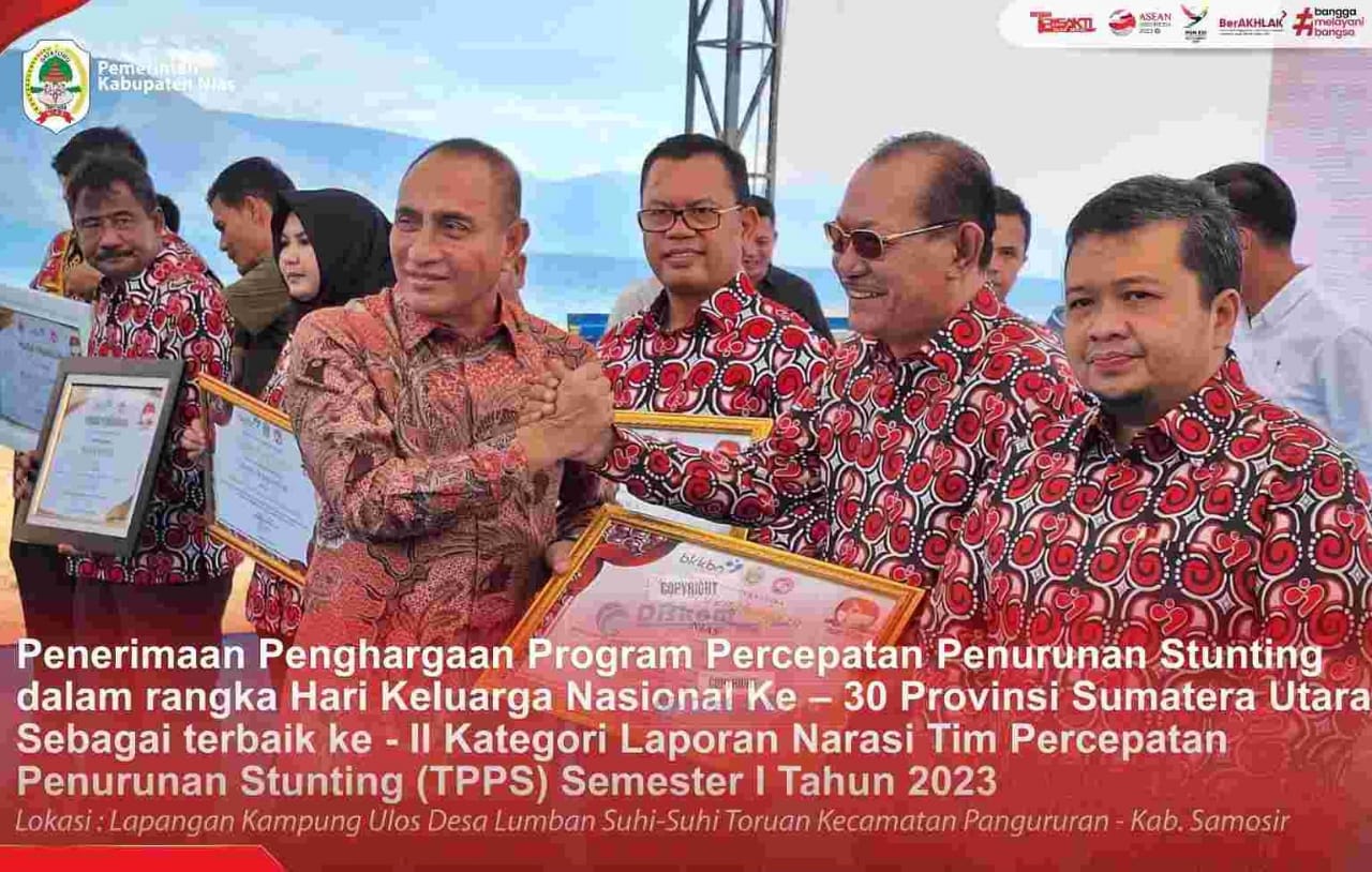 Pemerintah Kabupaten Nias menjadi salahsatu Pemerintah Daerah yang menerima Piagam Penghargaan untuk kategori Laporan Narasi Tim Percepatan Penurunan Stunting (TPPS) Semester I Tahun 2023, bersama dengan Pemerintah Daerah lainnya yakni Terbaik I Kabupaten Toba, Terbaik II Kabupaten Nias, Terbaik III Kabupaten Tapanuli Selatan, Terbaik IV Kota Binjai dan Terbaik V Kabupaten Serdang Bedagai.