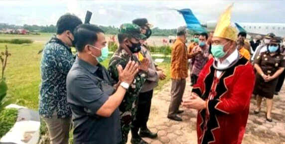 Setiba di Bandara Udara Binaka Gunungsitoli Menko PMK RI Bidang Pembangunan Manusia dan Kebudayaan Prof, Dr. Muhadjir Effendy dan Menteri PPPA RI Pemberdayaan Perempuan dan Perlindungan Anak I Gusti Ayu Bintang Darmawati.,SE.,M.Si, tiba bersama rombongan di Bandara Binaka Gunungsitoli. Kedatangan mereka disambut Kepala Daerah Se-Kepulauan Nias dan beserta unsur Forkompida, dengan sekaligus rangkaian pemasangan baju Adat Kepulauan Nias oleh Bupati Nias Utara dan Kajari Gunungsitoli kepada Menko PMK RI dan Menteri PPPA RI.