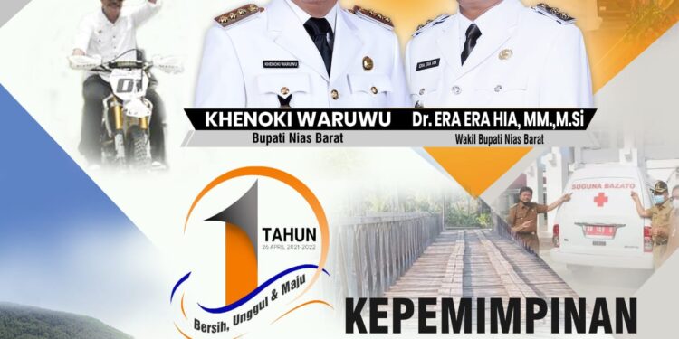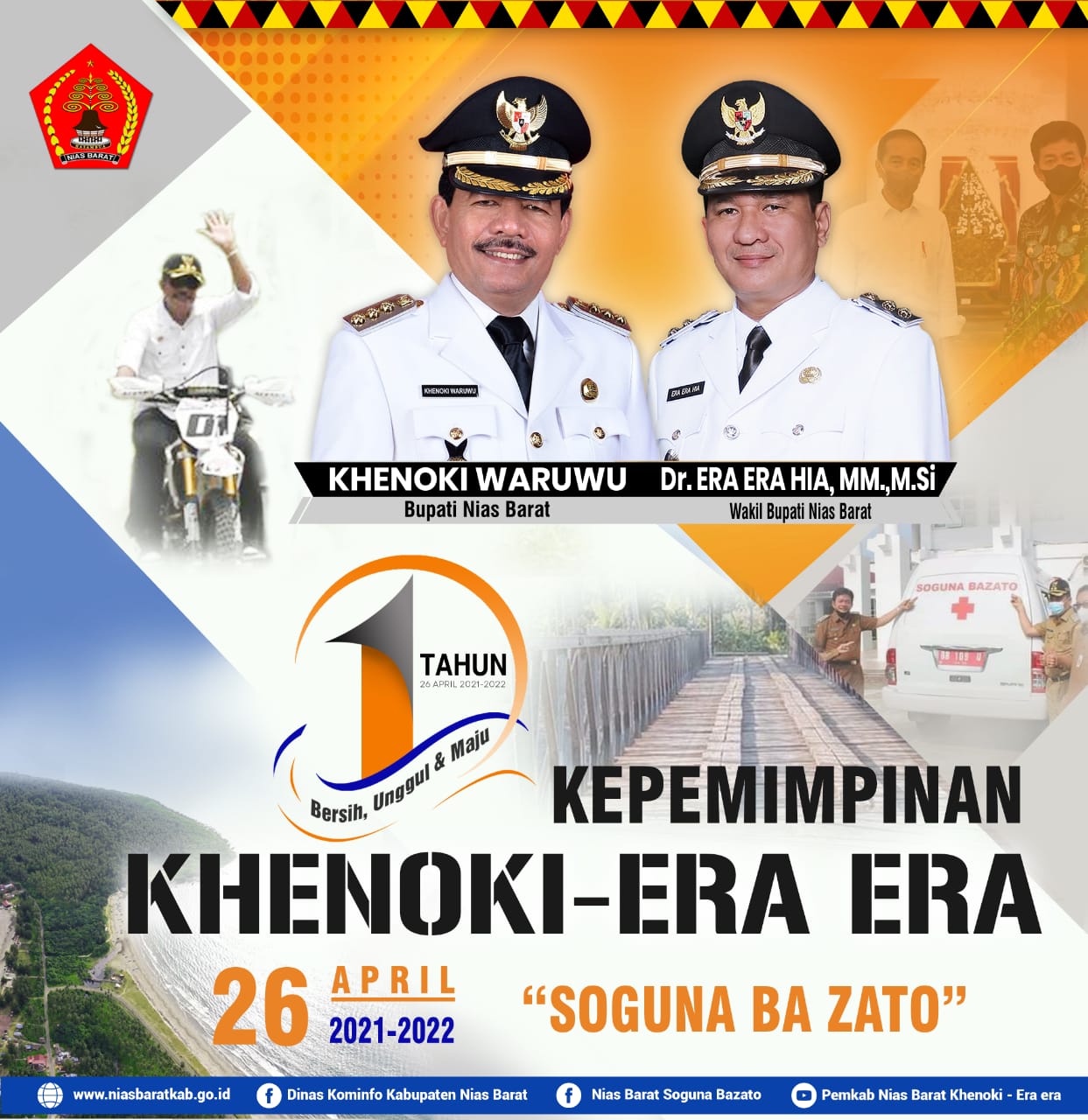 Nias Barat, suarainvestigasi.com – Hari ini (26/04/2022), tepat satu tahun Khenoki Waruwu dan Dr. Era-Era Hia,MM.,M.Si, menjalankan Tugas sebagai Bupati dan Wakil Bupati Nias Barat. Selama setahun Memimpin Nias Barat, walaupun dalam berbagai keterbatasan, Khenoki-Era-Era telah berupaya mewujudkan sebagian Visi-Misi dan Program yang ditawarkan pada masa Kampanye.