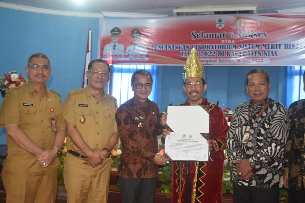 Efori Telaumbanua menambahkan bahwa acara Pencanangan Laboratorium Sistem Merit ditandai dengan penandatanganan Komitmen Pembinaan Penerapan Sistem Merit di Lingkungan Pemerintah Kabupaten Nias antara Bupati Nias, Ketua Komisi ASN, dan Perwakilan dari Kantor Regional VI BKN.