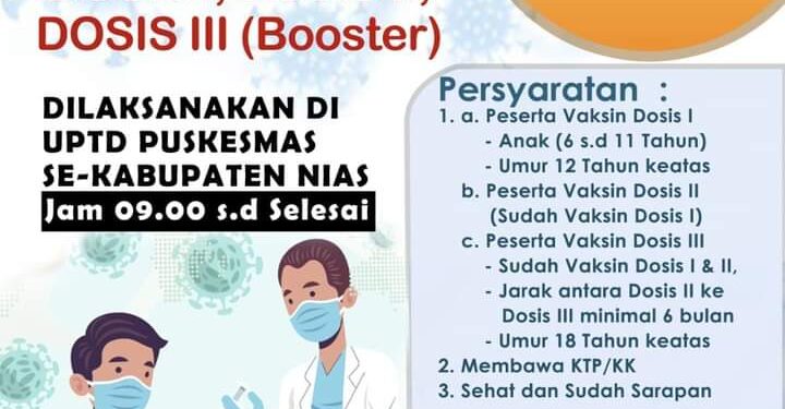 PLT Kepala Dinas Kesehatan, Pengendalian Penduduk dan Keluarga berencana Kabupaten Nias Rahmani Oktaviani Zandroto,S.KM kepada menyampaikan bahwa Lanjutan Vaksinasi serentak tersebut dimulai sejak 19 Februari sampai 25 Februari 2022. Baik penyuntikan Dosis Pertama, Dosis Ke-II maupun dosis Ke-III (Booster).