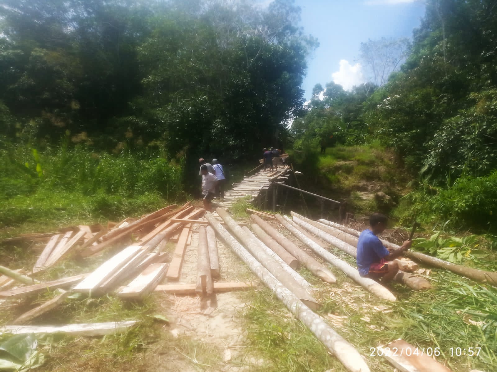 Nias Barat, suarainvestigasi.com – Warga Desa Lasarafaga terlihat sangat Antusias melaksanakan Gotong-royong untuk perbaikan Jembatan Gantung Bowou darurat sementara yang beralokasi di Dusun II Tumori Faga Desa Lasarafaga Kecamatan Mandrehe Barat, Kabupaten Nias Barat, Rabu (06/04/2022)