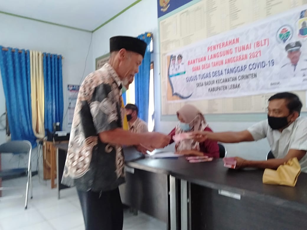 Dalam rangka Realisasi Program Bantuan Langsung Tunai (BLT) Termen I, II dan III Tahap I untuk Alokasi Bulan Januari, Februari, dan Maret yang bersumber dari Dana Desa bagi sebagian warga masyarakat yang terdampak COVID-19 yang akan diberikan langsung ke KPM di wilayah Desa Badur Kecamatan Cirinten Kabupaten Lebak .