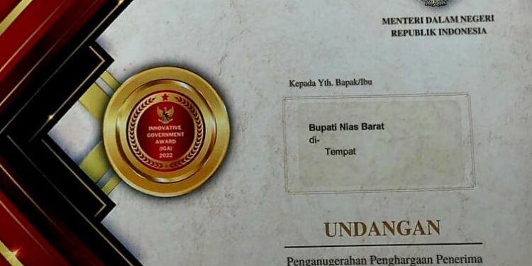 Sesuai informasi yang diterima oleh Tim Liputan Media Center Kabupaten Nias Barat, Nias Barat termasuk salah satu nominator Kabupaten Terinovatif kategori Daerah Tertinggal yang akan menerima Innovative Government Award Tahun 2022.