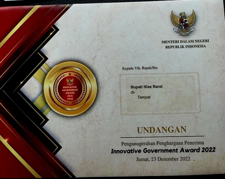“Kita telah menerima undangan dari Menteri Dalam Negeri dan saya hadiri langsung acara Penganugerahan Innovative Goverment Award 2022 tersebut”, kata Bupati Khenoki Waruwu.