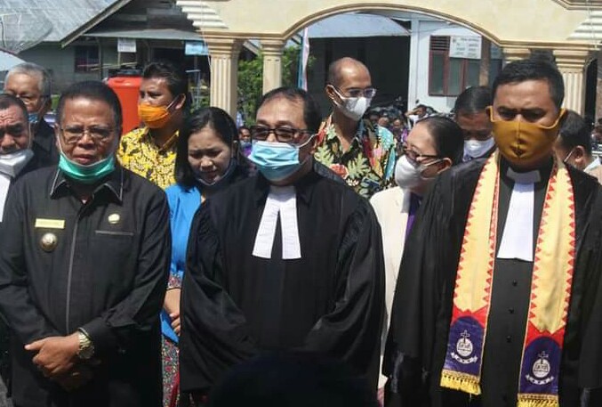 Nisbar, suarainvestigasi.com –Bupati Faduhusi Daeli.,S.Pd.,MA.,MM bersama Sekda Prof. Dr. Fakhili Gulo.,M.Sc Kab. Nias Barat dan sejumlah Pimpinan OPD Lingkup Pemkab. Nias Barat menghadiri Pelaksanaan Acara Pembukaan Rapat Kerja (RAKER) Guru/Pendeta Jemaat Se-Gereja ONKP. Acara yang dilaksanakan di Gereja di Gereja ONKP Jemaat Hiligafia Resort Hiligafia, Desa Sisobambaho Kec. Mandrehe Kab. Nias Barat, pada hari kamis 04/03/2021.