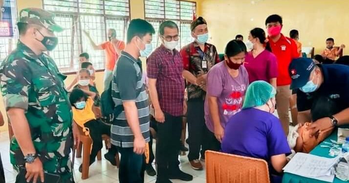 Pelaksanaan Vaksinasi Covid-19 untuk Usia 6-12 Tahun tersebut dipantau Bupati Nias lansung di SD Negeri 071001 Desa Fadoro Tanose’o, Kecamatan Hiliduho, Kabupaten Nias.