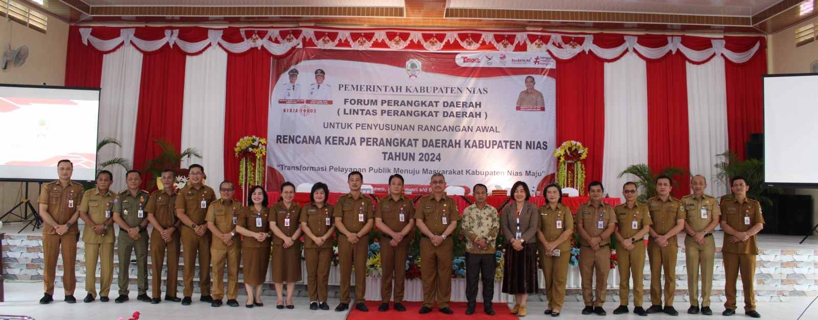 Mengawali arahannya, Sekda Kabupaten Nias Samson P. Zai, S.H., M.H menerangkan bahwa Forum Perangkat Daerah/Lintas Perangkat Daerah ini merupakan lanjutan dari Musrenbang RKPD di tingkat Kecamatan, dimana dari Musrenbang RKPD di tingkat Kecamatan telah diperoleh hasil verifikasi kecamatan atas usulan desa, yang kemudian akan diverifikasi tingkat Perangkat Daerah. Dalam rangka memverifikasi usulan kecamatan di tingkat Perangkat Daerah dimaksud, maka diperlukan saran dan masukan dari pemangku kepentingan.
