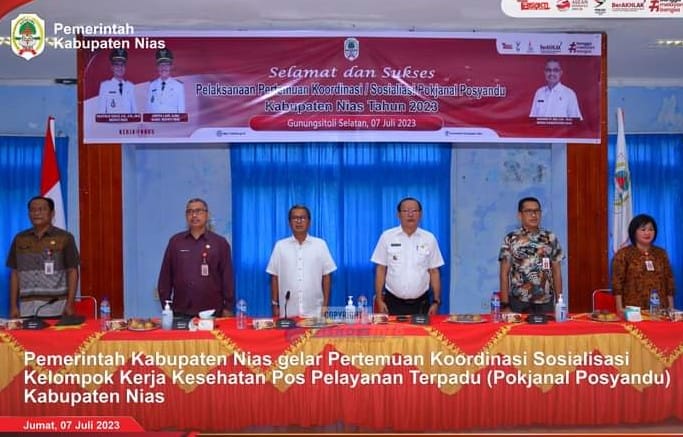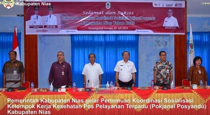 Nias, suarainvestigasi.com – Pemerintah Kabupaten Nias gelar Pertemuan Koordinasi Sosialisasi Kelompok Kerja Kesehatan Pos Pelayanan Terpadu (Pokjanal Posyandu) Kabupaten Nias, bertempat di Ruang Serba Guna, Lantai III Kantor Bupati Nias, Jumat (07/07/2023).