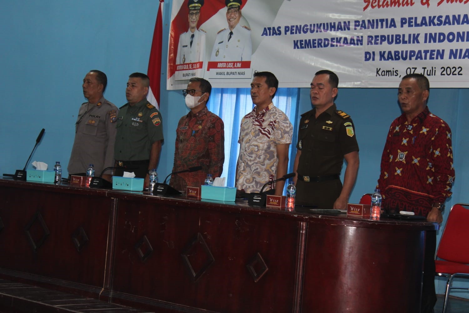 Kegiatan tersebut diawali dengan laporan Ketua Panitia yang disampaikan langsung oleh Kepala Bidang Kesatuan Bangsa, Aryani Sri Hartati Zebua, SH menyampaikan bahwa maksud dan tujuan Pelaksanaan Kegiatan pada hari ini adalah untuk membentuk Panitia Pelaksana sekaligus Rapat Perdana Peringatan HUT Ke-77 Kemerdekaan Republik Indonesia Tahun 2022. Mengingat Keputusan Bupati Nias Nomor 003.1/189/K/2022 tanggal 24 Juni 2022 tentang Pembentukan Panitia Pelaksana Peringatan HUT Ke-77 Kemerdekaan Republik Indonesia Tahun 2022 di Kabupaten Nias.