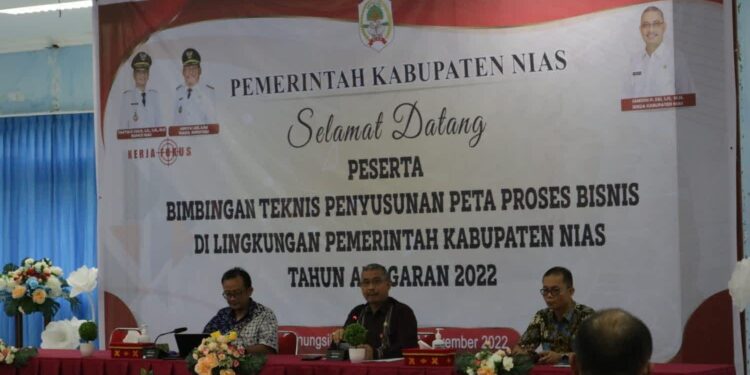 Nias, suarainvestigasi.com –Pemerintah Kabupaten Nias laksanakan Bimtek tentang Penyusunan Peta Proses Bisnis di Lingkungan Pemerintah Kabupaten Nias Tahun 2022 bertempat di Gedung Serba Guna, Lantai III Kantor Bupati Nias, Kamis (17/11/2022)