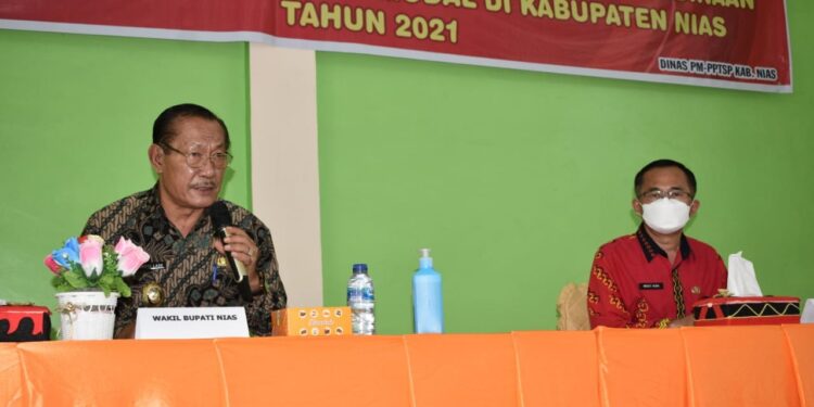 Kepala Dinas Penanaman Modal dan Pelayanan Perizinan Terpadu Satu Pintu Kabupaten Nias, Drs. Ingati Hura, dalam laporannya menyampaikan, bahwa: