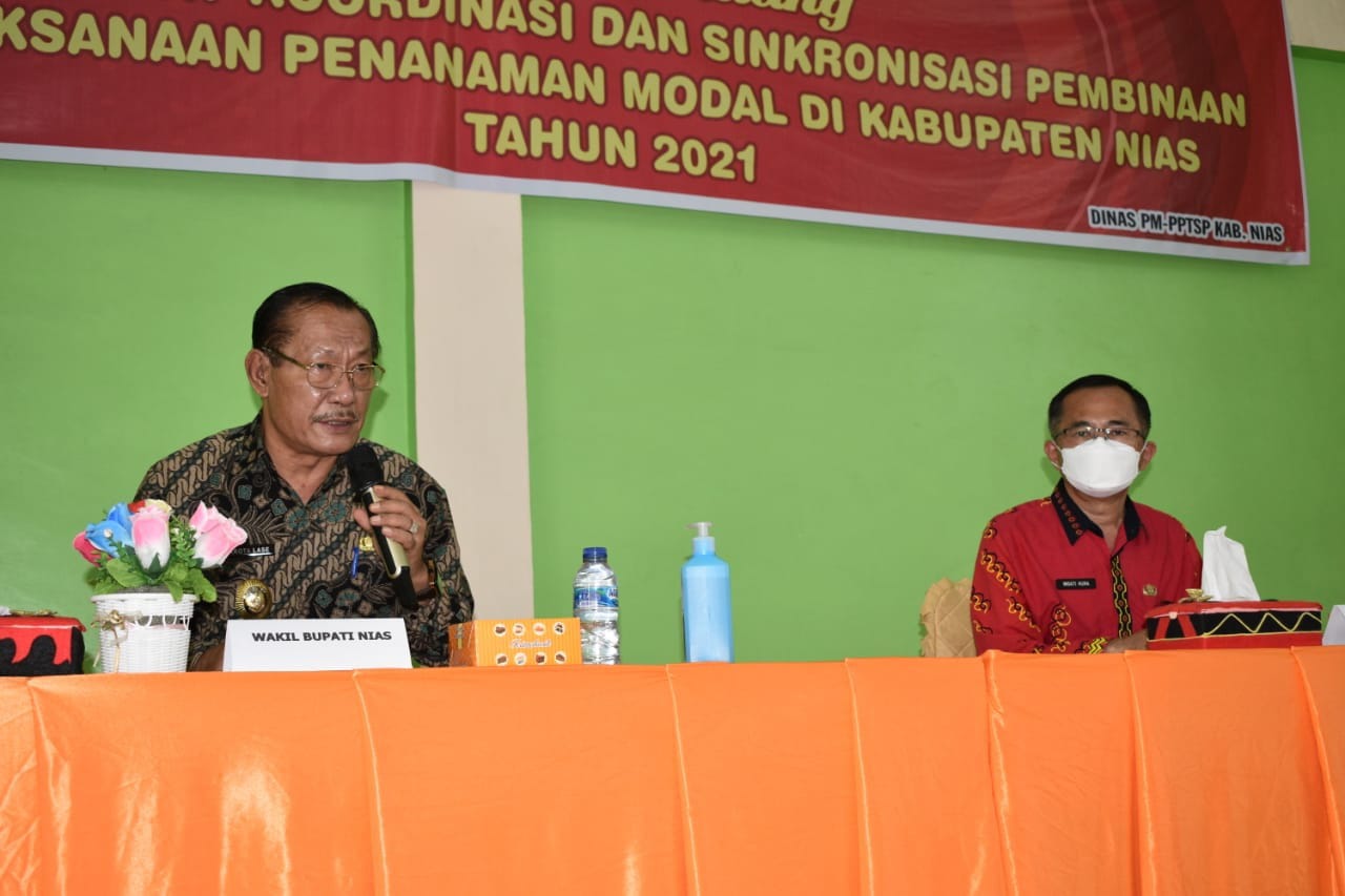 Sehubungan dengan Implementasi ketentuan dan Kebijakan baru di Bidang Penanaman Modal dan Perizinan tersebut, pada hari ini melalui Dinas PM-PPTSP Menyelenggarakan Rapat Koordinasi dan Sinkronisasi Pembinaan Pelaksanaan Penanaman Modal dengan melibatkan para Stakeholder atau pemangku kepentingan khususnya para pelaku Usaha di Wilayah Kabupaten Nias.