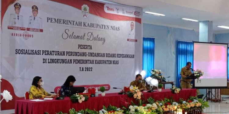 Hal inilah yang mendasari Pemerintah Kabupaten Nias menyelenggarakan Sosialisasi Peraturan Perundang-Undangan Bidang Kepegawaian di Lingkungan Pemerintah Kabupaten Nias Tahun Anggaran 2022 dalam rangka mewujudkan ASN Kabupaten Nias yang adaptif terhadap perubahan regulasi dan kebijakan di bidang kepegawaian, sehingga pemerintah berkewajiban membekali ASN dengan pengetahuan, wawasan dan informasi terhadap Peraturan Perundang-Undangan Bidang Kepegawaian agar tidak menimbulkan deviasi atau bias dalam penerapannya.